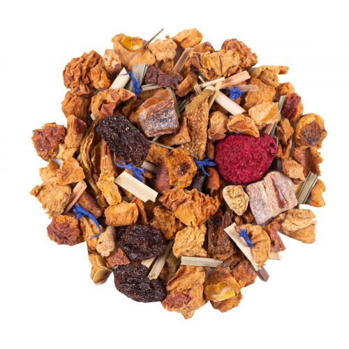 Questo infuso unisce note fresche di lampone e acerola a una miscela armoniosa di frutta biologica, come mela cotogna e dattero, arricchita da delicate essenze naturali di limone, pompelmo e bergamotto. Ogni sorso offre un gusto vibrante, ideale per chi cerca una bevanda genuina ricca di gusto. Priva di teina, è ottima da gustare calda nelle tranquille serate invernali o in qualsiasi momento della giornata.