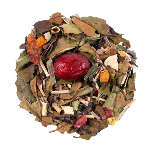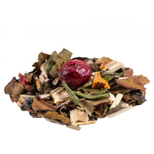 - Ingredienti: Tè bianco Pai Mu Tan*, tè verde China Chun Mee*, citronella*, scorza di limone*, scorza d'arancia*, liquirizia*, papaya*, zenzero (zenzero, zucchero grezzo di canna)*, aroma naturale di pompelmo, mirtilli rossi*, melagrana*, aroma naturale di mirtillo rosso, aroma naturale di limone. *Biologico certificato